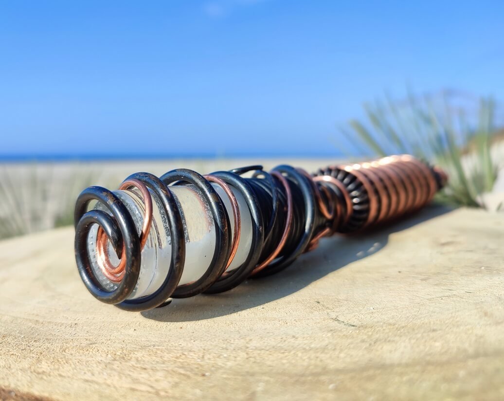 Fiolkę z GANS CO₂/ZnO otacza spiralna cewka, która wzmacnia działanie pola bioenergetyczneo, co przekłada się na natychmiastowy, fizycznie odczuwalny efekt terapeutyczny.